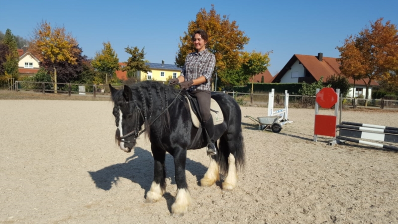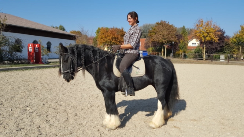 Unsere wunderschöne Dolly, eine 7jährige typvolle Cob Stute mit viel Behang, hat ihr großes Herz am rechten Fleck. Superliebes angenehmes Pferdewesen. Sie ist in der Halle geritten, als auch am Platz. Im Gelände eine 100% Lebensversicherung: absolut brav und unerschrocken meistert sie souverän alle Lebenslagen. Wurde mitgenommen auf Jagdtraining und ist mit Spaß bei den Ausritten dabei. Dolly eignet sich auch sehr gut für ängstliche Reiter-/innen. Ein Traum von einem Freizeitpferd - so macht Ausreiten Spaß. |