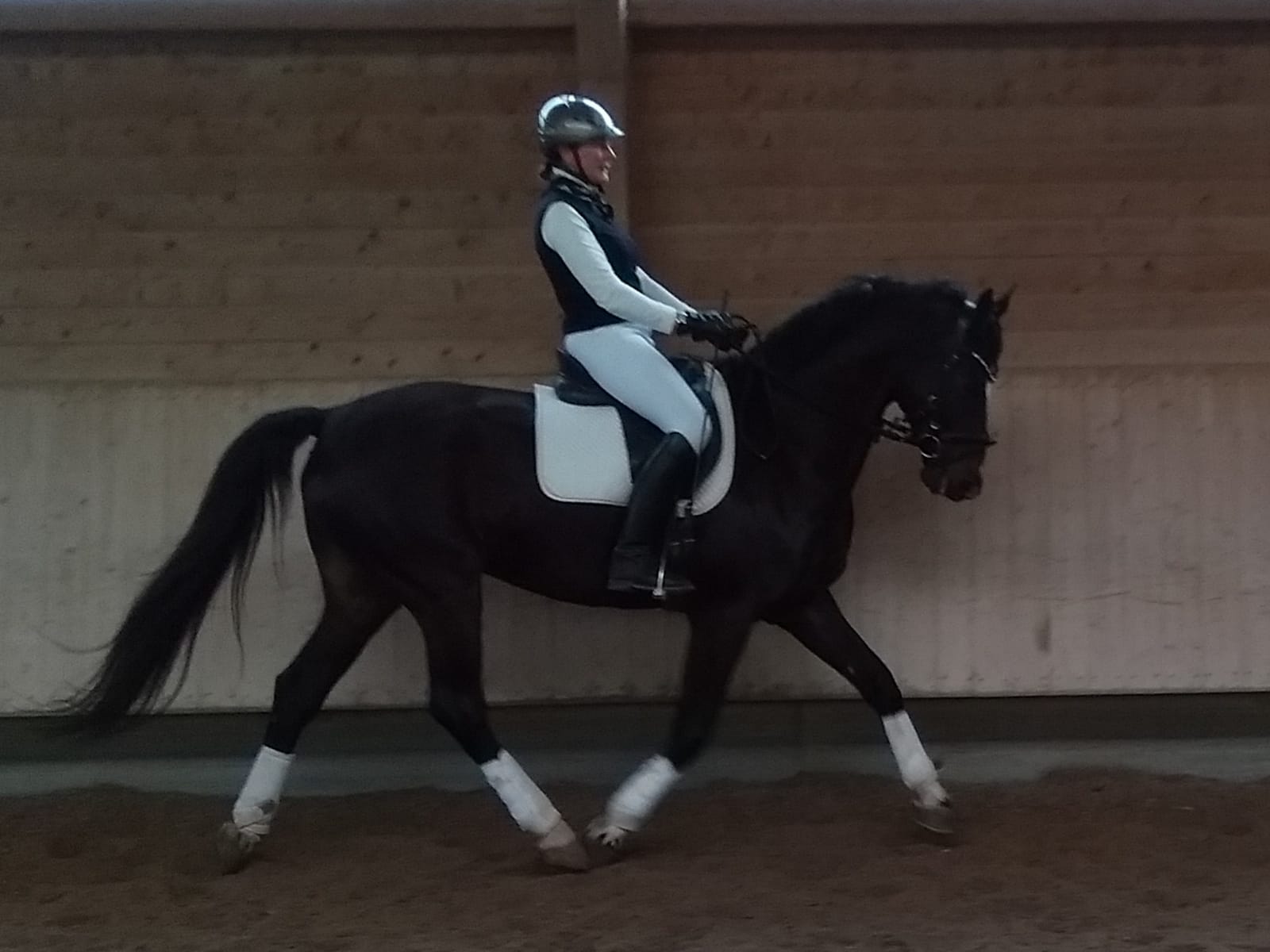 Bildschöner, sehr schicker großrahmiger schwarzbrauner Wallach mit 3 sehr guten Grundgangarten und ehrlichem Charakter. |